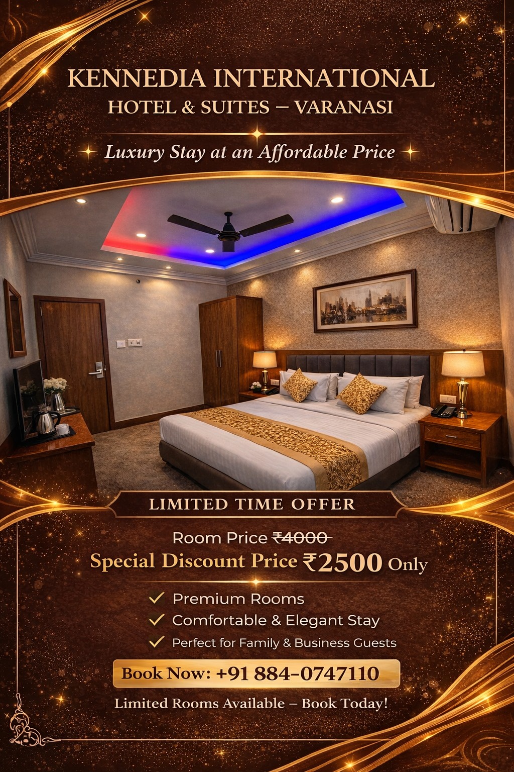 " I had an amazing stay at Kennedia Hotel Varanasi. The rooms were spacious, clean, and beautifully designed with modern amenities. The staff was extremely polite and always ready to help. The location is perfect for visiting major attractions in Varanasi, making travel very convenient "